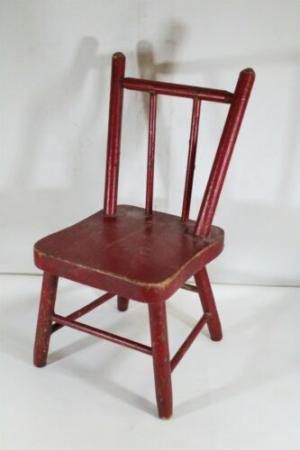 Old Primitive Red Wooden Miniature Child''s Doll Store Display Chair