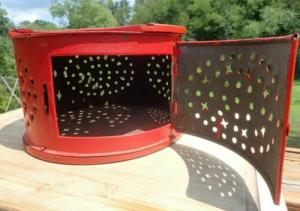 Unusual Round Punched Tin Wood Foot Warmer Rare Antique Primitive Hobo Folk Art