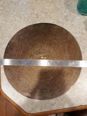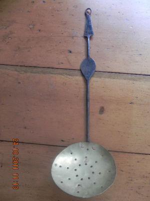 Antique Iron and Copper Primitive Perferated Ladle Strainer w Craftsman Mark