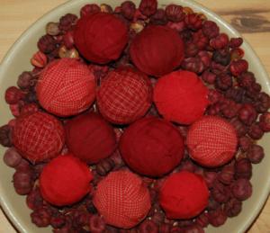Primitive Valentines Red Homespun Rag balls, Set of 12 TMAP