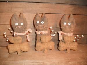 3 PRIMITIVE SAINT PATRICKS GRUBBY CAT DOLLS W/SHAMROCKS ERIN*RYAN*PAT