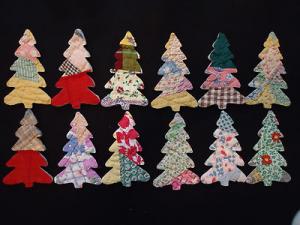 12 PRIMITIVE VTG CUTTER QUILT CHRISTMAS TREES - FOLK ART