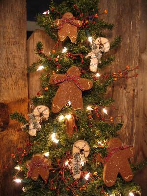 * 7 Primitive GINGERBREAD ~ CANDY CANE HP Folkart Christmas Ornies ~ GLITTERED