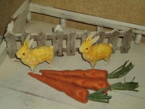 ANTIQUE PRIMITIVE BUNNIES/CHALKWARE/FENCE/ EASTER AAFA