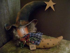 Primitive Halloween Doll MOON - berries - rusty wire 10 x 12 in. doll