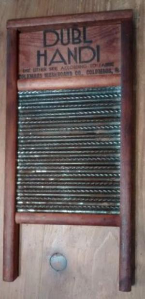 Vintage Primitive Wood & Metal 18" Dubl Handi Washboard Columbus Co.