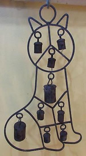 Vintage old metal Pigs door wind chime bells 16 x 12" farm barn store USA Prim