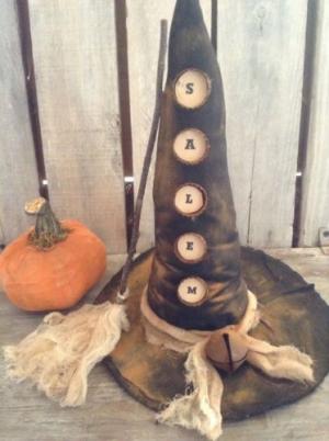 Primitive Grungy Pumpkin Halloween Witch Hat Broom