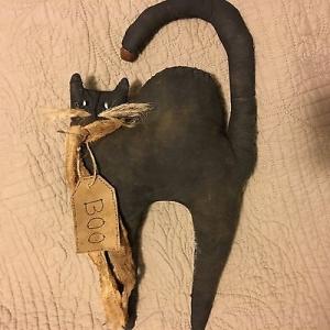 Primitive grungy Halloween scaredy cat Shelf sitter tuck decor door greeter