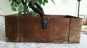 primitive wood box basket leather handle BARN FIND floral display decor estate