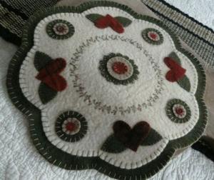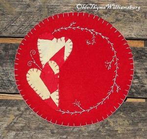 Primitive Bittersweet VALENTINES Cranberry Vintage Quilt Penny Rug ~ Candle Mat