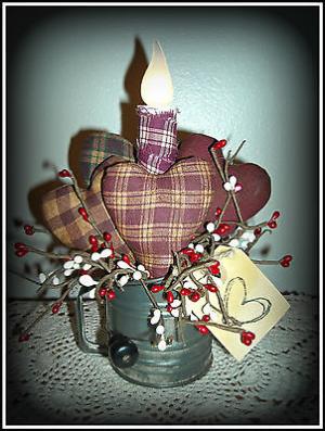Primitive Valentine!! Homespun HeArTs in Child Sized Flour Sifter LAMP!
