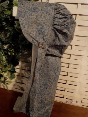 primitive prairie pioneer bonnet tea stained blue roses on blue calico cotton