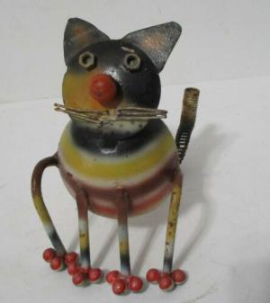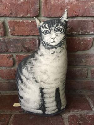 Vintage Old Large Stuffed Barn Tabby Cat Toy Cloth Doll Toy Works 13”
