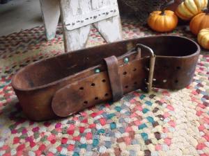 Old Primitive Vintage or Antique Leather Weight Lifter''s Weight Belt