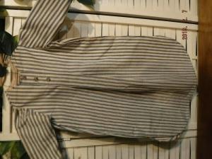 Primitive pioneer old time night shirt cotton blue ticking stripe tea stained