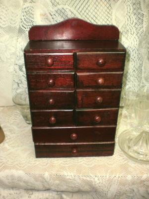 Vintage DARK WOOD cabinet with (10) drawers HANG UP OR SIT UP