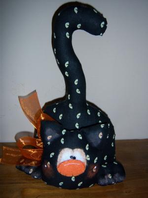 PRIMITIVE FOLK ART HALLOWEEN HC BLACK CAT SHELF SITTER ORNIE DOLL TUCK