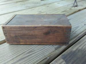 Primitive Wooden Box sliding Lid ~ Advertising Trimo Pipe Wrench ~ Roxbury, Mass