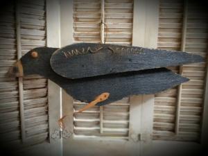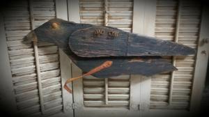 Primitive Handcrafted Wooden Crow Wall Door Hanger ~Folk Art ~ Raven ~ Halloween