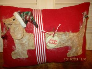 PrimiTive CHriSTmas PilloW~DACHshunD~14" lonG~DeCoratioN ONly~SParKLe~HaPPy