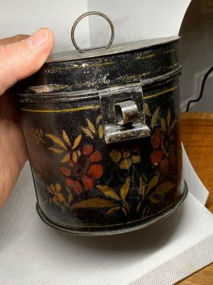 A GREAT 19TH C PENNSYLVANIA PAINT DECORATED TIN TOLEWARE COVERED Latched Tea Box