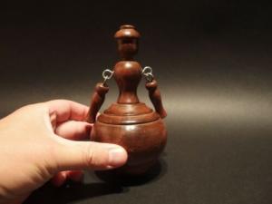 Antique Vintage Style Turned wood doll Spinning Top Toy w Cloth Bag