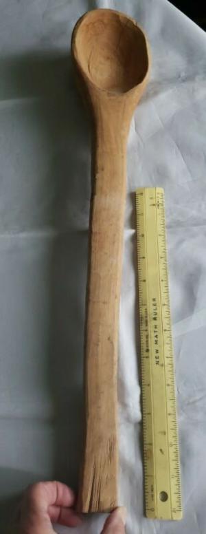 Primitive Antique Wooden Spoon Scoop Ladel hand carved 1 piece wood X-large 21"