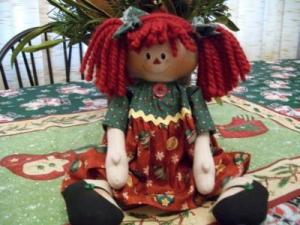 PRIMITIVE CUTE CHRISTMAS DRESS RAGGEDY ANN TYPE DOLL BY YELLOWSWEETPOTATO~C&PLG