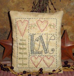 ~VALENTINE LOVE HEARTS~ ~ Primitive Stitchery Sampler Pillow
