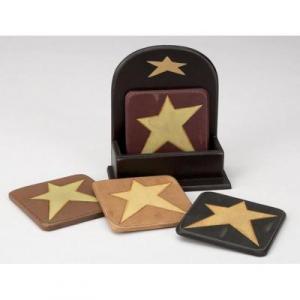 Primitive Wooden Star Coasters Caddy