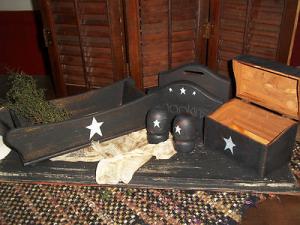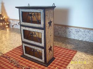 PRIMITIVE CRACKLE BLACK STAR WOOD BOX CHEST WITH DRAWERS COUNTRY FARMHOUSE DECOR