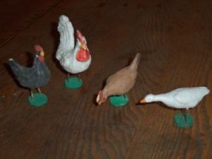 Vintage Old Primitive Composition Chicken & Duck Figure Lot of 4