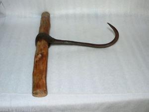 Primitive Vintage Cast Iron Hand Forged Meat Hook Gaff Butchering Farm Tool