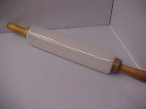 Antique Rolling Pin White Translucent Milk Glass with Wooden Handles