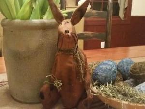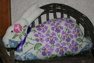Primitive Vintage Cross Stitch Bunny Rabbit Pillow Basket Filler Spring Easter