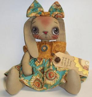 PriMiTiVe Folk Art RaGGedY DoLL BuNNy TaG SuNFloWeR RaBBiT