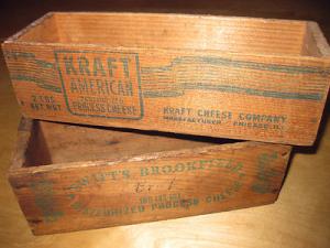 2 Wooden Cheese Boxes, early 1900s. Kraft and Swift's Brookfield