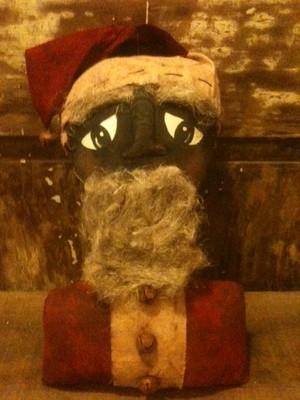 Primitive Black Santa Bust Doll~OOAK