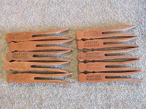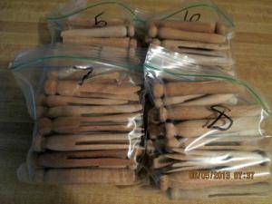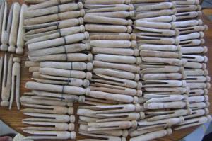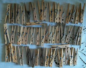 49 vintage wood clothespins spring type