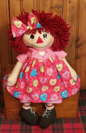 Handmade VALENTINE Raggedy ANN Doll in CANDY HEART Dress