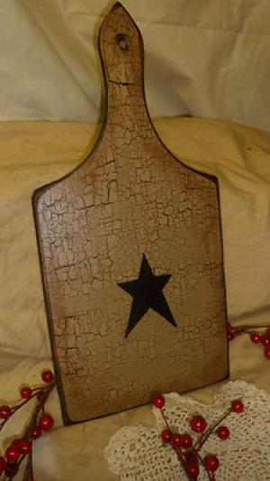 PRIMITIVE OLD WOOD CUTTING CHOPPING BOARD TAN CRACKLE FARM HOUSE COUNTRY DECOR