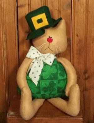 Handmade CHUBBY Irish Raggedy KITTY CAT LEPRECHAUN DOLL St Patricks Shelf Sitter