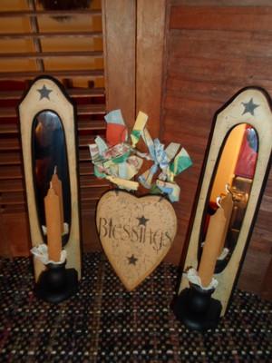Primitive Country Crackle....Farmhouse....Gathering Candleholders, Shelf w/ Line