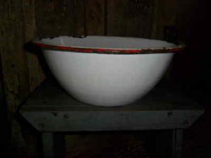 ~Primitive Antique Washtub - Enamelware " DEEP " Basin-Old - White with Red Trim