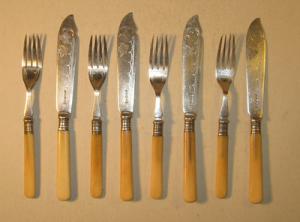 ★ NICE 19TH CENTURY SET 0F 4 PAIRS OF CUTLERY WITH MAKERS MARKS ★