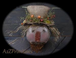 ~★Primitive Fall Grunged Scarecrow Head★Sitter on Old Rusted Tin Can★~ooak