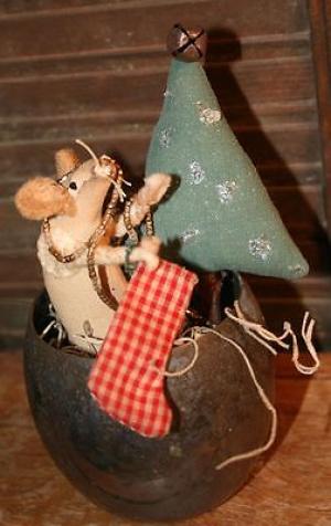 Primitive Mouse Decorating Christmas Tree Gathering Cupboard Tuck Stocking