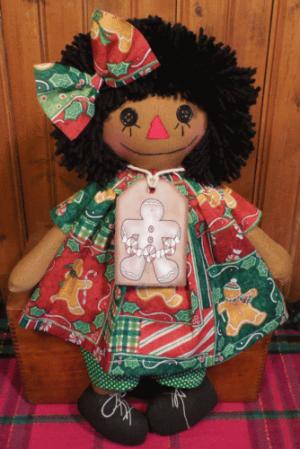 Handmade BLACK Button EYE Raggedy ANN Doll CHRISTMAS GINGERBREAD Dress