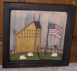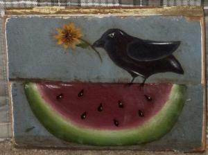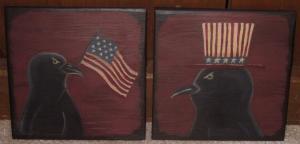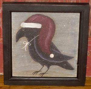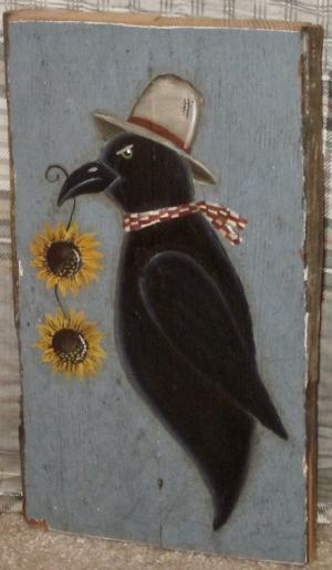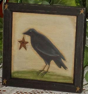 *~*PRIMITIVE*~* HP FOLK ART PRIM CROW *~* BARN STAR *~* DOOR PANEL